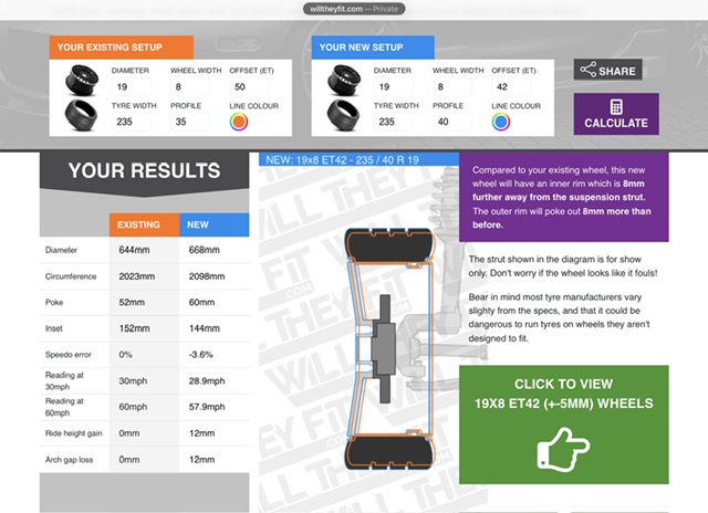 @pixelcellar - Below are the results from the calculator on www.willtheyfit.com of fitting the wheel/tyre combination you’re proposing to fit compared to your existing wheel / tyre setup;