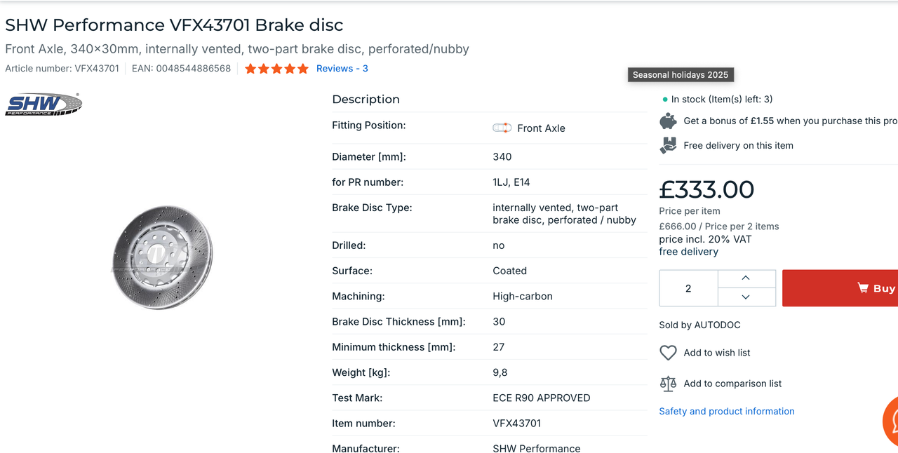 Has anyone recommendations for where is best to buy Clubsport S front discs for the best price? I see Killerbrakes on line and eBay, but wary you get hit with import duty as they seem to be coming from Romania and then you are no better off. There used to be a few people doing a group buy in years gone by, but I can't see any deals being offered nowadays.