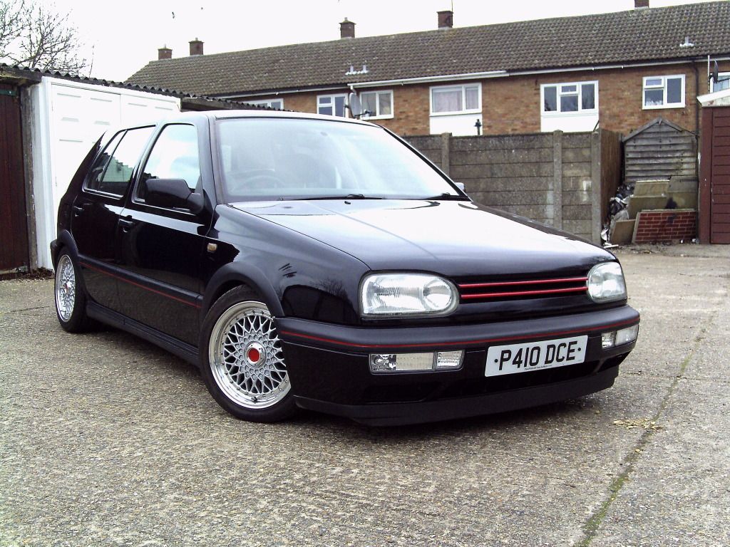 yeah you need a slight colour theme going on somewhere to mach it to really. my black golf had a silver pin tripe to mach the chrome wheels.