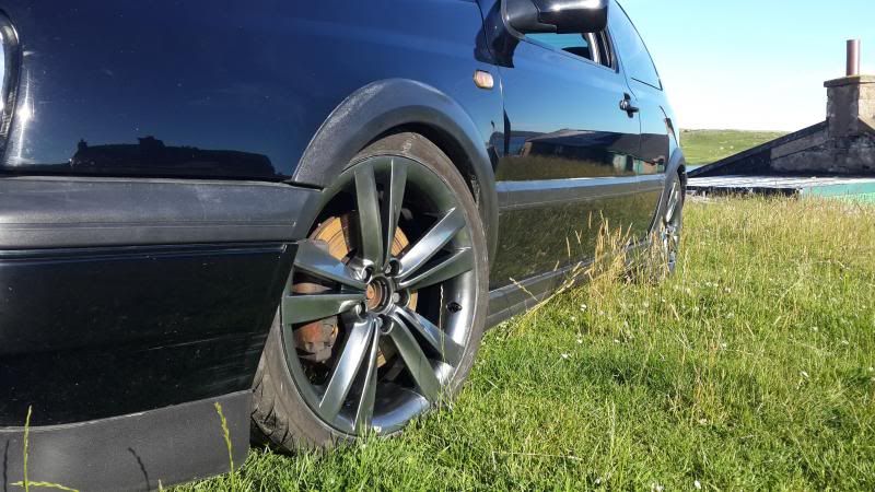 My Son has an 8V GTI with standard suspension. He's thinking of buying a set of 17" Monza replicas for it, ET 35. What size tyres would he need to fit to get them under the arches and keep the speedo within limits, and is he likely to get any clearance problems?